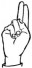 На ћирилици написано МИОМИРА КОЈИЋ састоји се из 12 слова [?]. Исписано ћириличном једноручном азбуком за глувонеме:
